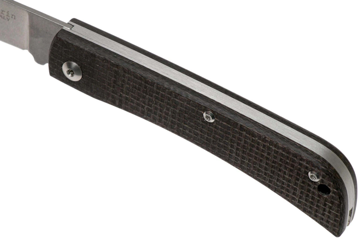 La Maserin Scout es una navaja EDC práctica y compacta. Lo primero que llama la atención es el impresionante mango de micarta de colores. La micarta se compone de capas de lona con epoxi que se comprime a alta presión. De este modo, se obtiene un material de mango muy resistente y bonito. Lo interesante de la micarta es que puede oscurecerse tras su uso. Es el resultado de los aceites de la mano que forman una especie de pátina. ¿Te has cansado de este color oscuro? Basta con desengrasarla con un poco de gasolina y la micarta volverá a estar casi como nueva.