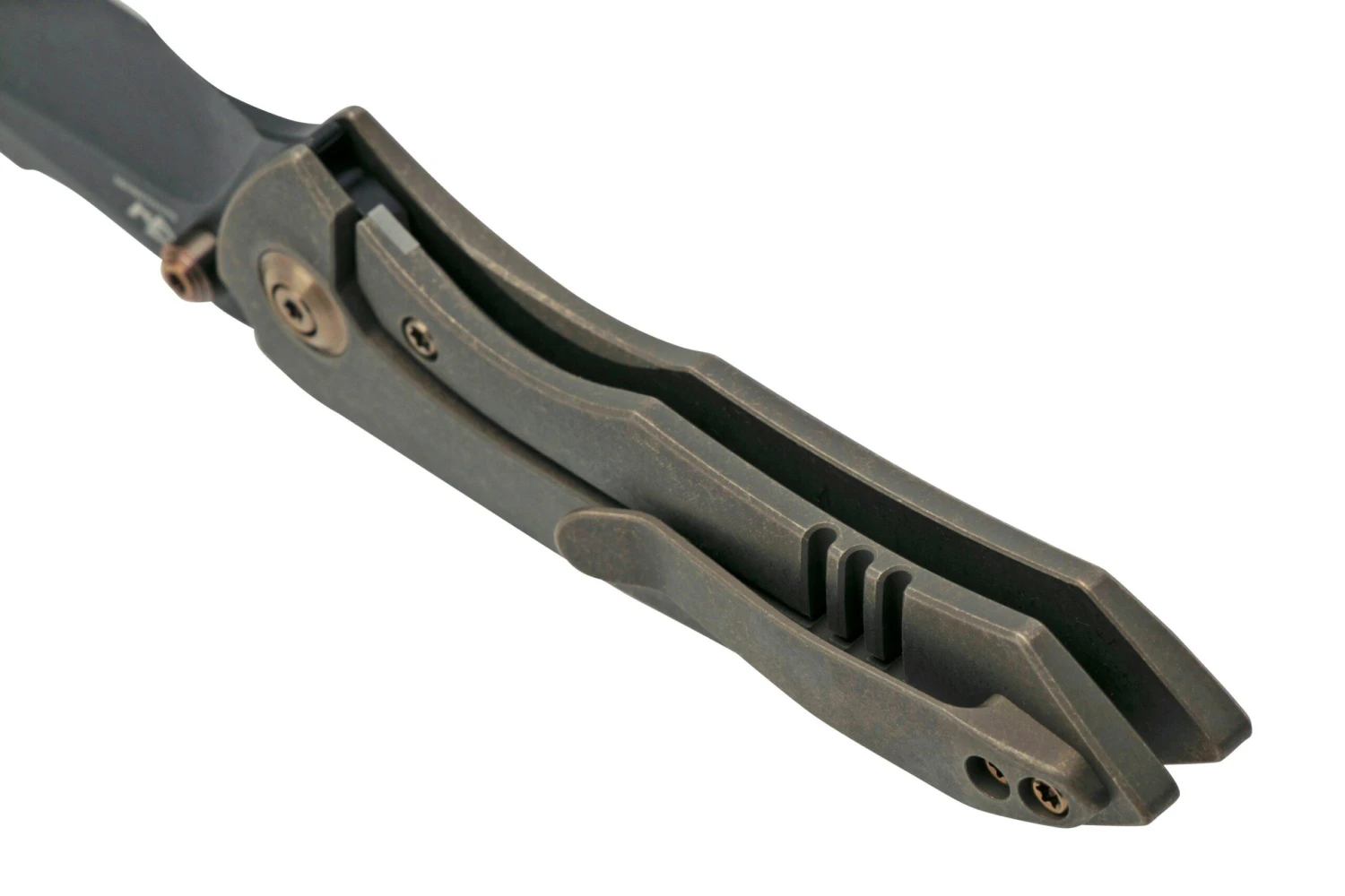 La We Knife High-Fin es una navaja especial con un diseño sorprendente que no desentonaría en una película de ciencia ficción. Lo primero que llama la atención de la High-Fin es la combinación de líneas elegantes y la hoja en forma de tanto invertido. La hoja se abre con los pasadores para el pulgar, tras lo cual un sólido cierre framelock mantiene la hoja firmemente en su sitio.